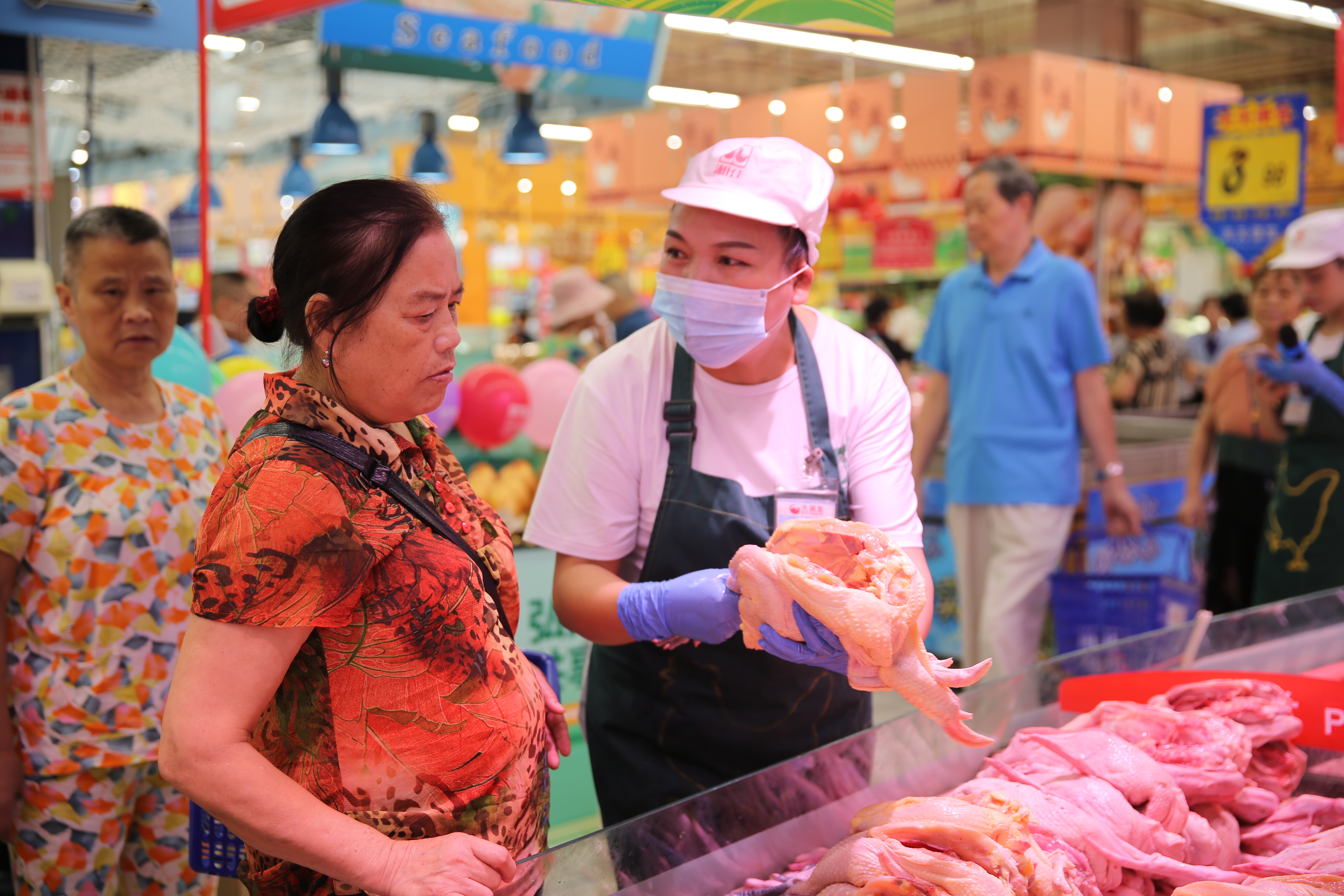 這次活動,是為湘佳和大潤發積極響應常德市9月1日關閉中心城區活禽交易市場號召、保障常德市民鮮禽產品供應而特地舉辦的。活動期間,湘佳鮮禽專柜前,顧客摩肩接踵,場面十分熱鬧,就連隔壁柜臺的銷售員都說:“這些員工太厲害了!湘佳是從哪里招來的這些精英啊?”
