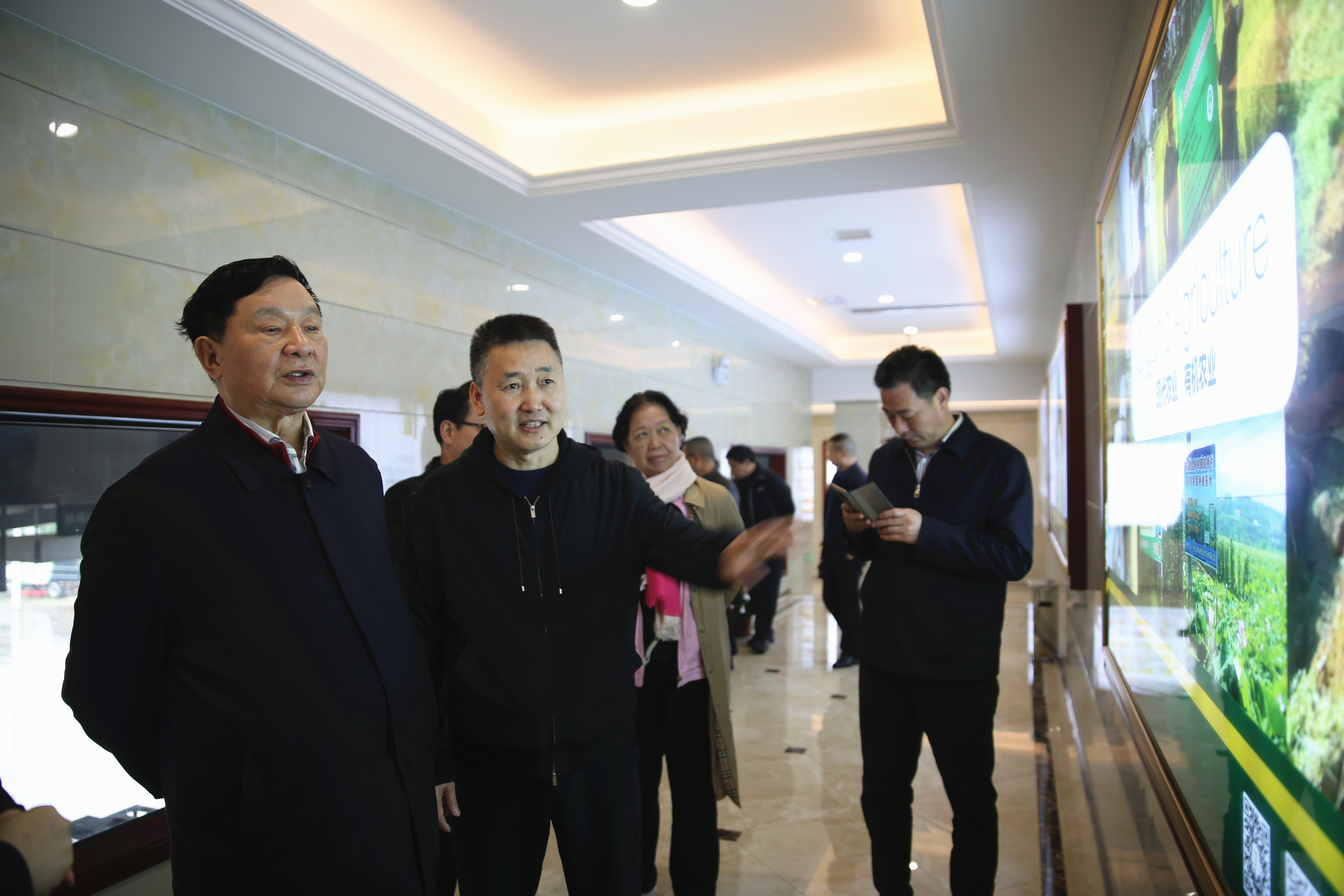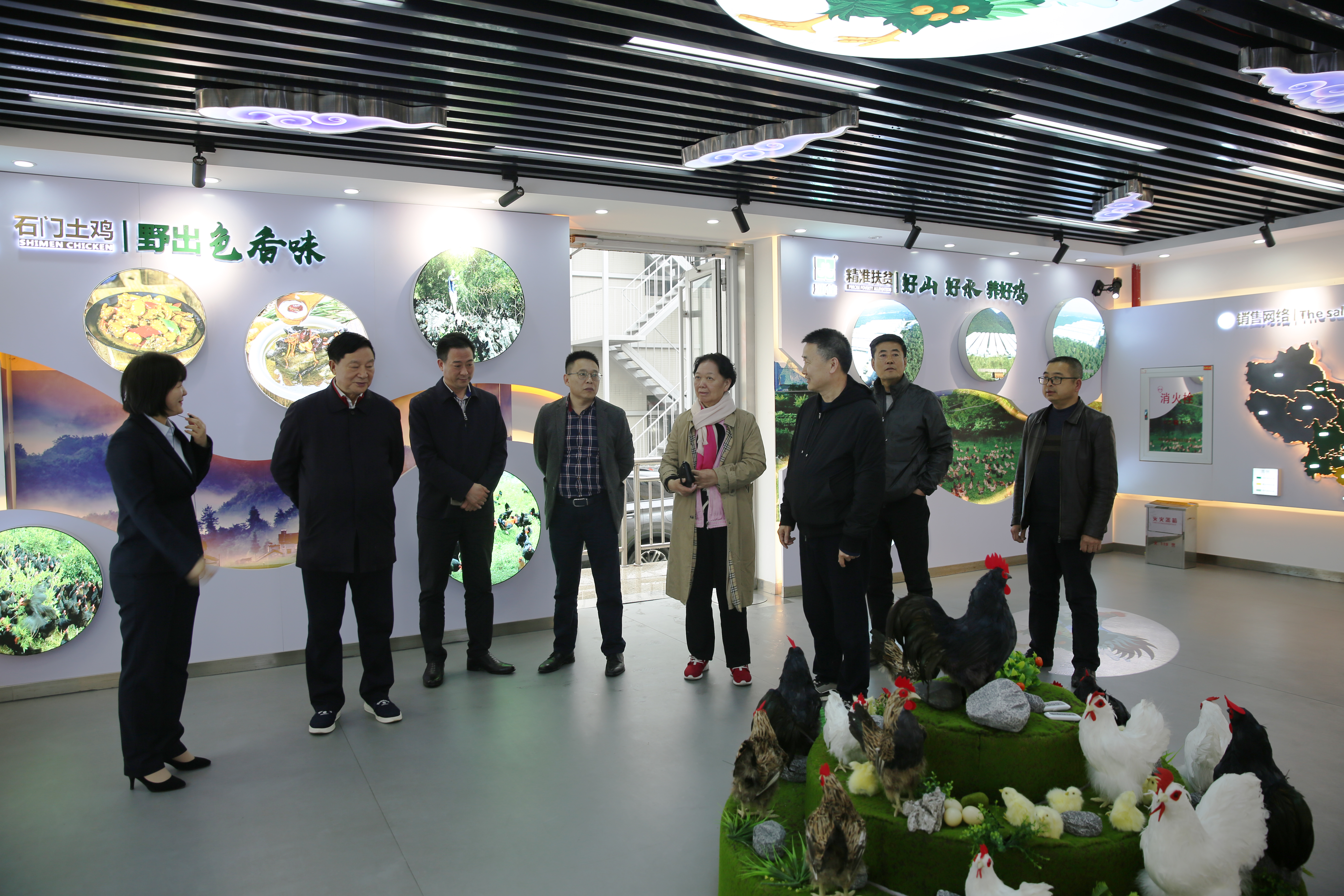 參觀途中,講解員介紹到,湘佳現(xiàn)代農(nóng)業(yè)利用雞糞生產(chǎn)加工有機(jī)肥,廣泛施用于水果、蔬菜、茶葉、水稻、油茶、中藥材、花木等作物栽培,有效地改良了土壤結(jié)構(gòu),提高了農(nóng)作物品質(zhì),受到了各地農(nóng)民的喜歡。 看到賀龍與石門土雞的故事將軍連拍了幾張照片… 參觀途中,文化長(zhǎng)廊里的一扇櫥窗,吸引了唐天標(biāo)的目光,那扇櫥窗展示的是賀龍?jiān)獛浐褪T土雞的故事—— 1931年,賀龍率領(lǐng)紅軍進(jìn)駐湘鄂邊界南北墩,當(dāng)?shù)氐耐了尽⑼梁捞羝饍墒“傩招刀罚瑥闹袧O利。為了發(fā)動(dòng)兩省邊界的老百姓?qǐng)F(tuán)結(jié)起來(lái),打土豪分田地,賀龍別出心裁,利用趕集日,搞了一場(chǎng)“南北墩燉土雞大會(huì)”,還親自寫了一副對(duì)聯(lián)—— 吃土雞打土豪斗土司鬧革命何分南北 當(dāng)農(nóng)夫栽農(nóng)田入農(nóng)會(huì)求翻身哪管東西 橫批:團(tuán)結(jié)對(duì)敵 唐天標(biāo)仔細(xì)地欣賞著這副對(duì)聯(lián),連聲說(shuō)“好故事!好對(duì)子!”并拿起手機(jī),連拍了幾張照片,留作紀(jì)念。