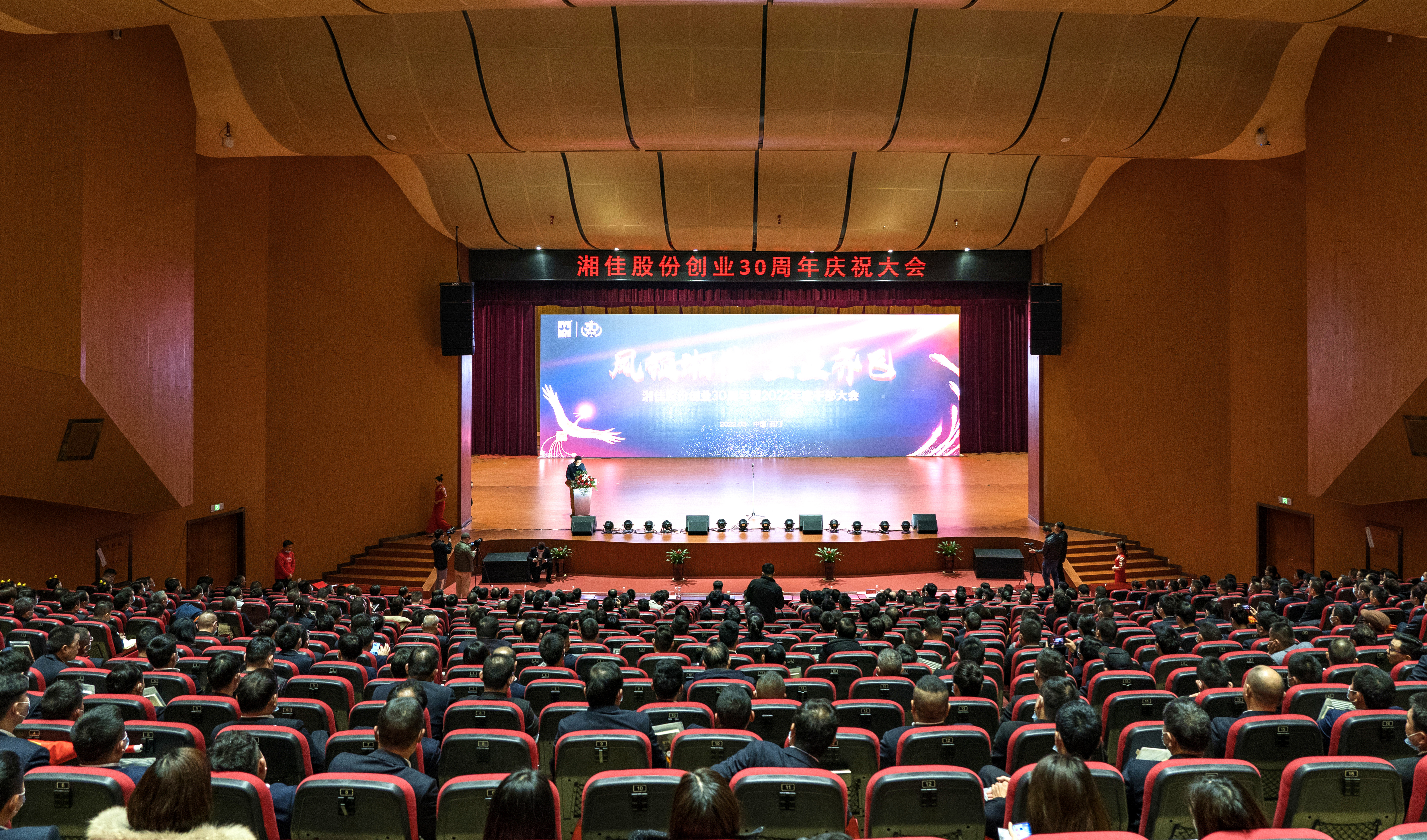 3月8日,湘佳股份創(chuàng)業(yè)30周年慶祝大會暨石門縣人民政府與湘佳股份百億產(chǎn)業(yè)園項目投資簽約儀式在石門市民之家人民會堂隆重舉行。來自石門縣各鄉(xiāng)鎮(zhèn)、各縣直單位的100多位負責人和湘佳股份各分子公司、各部門的600多人參加了此次大會。
