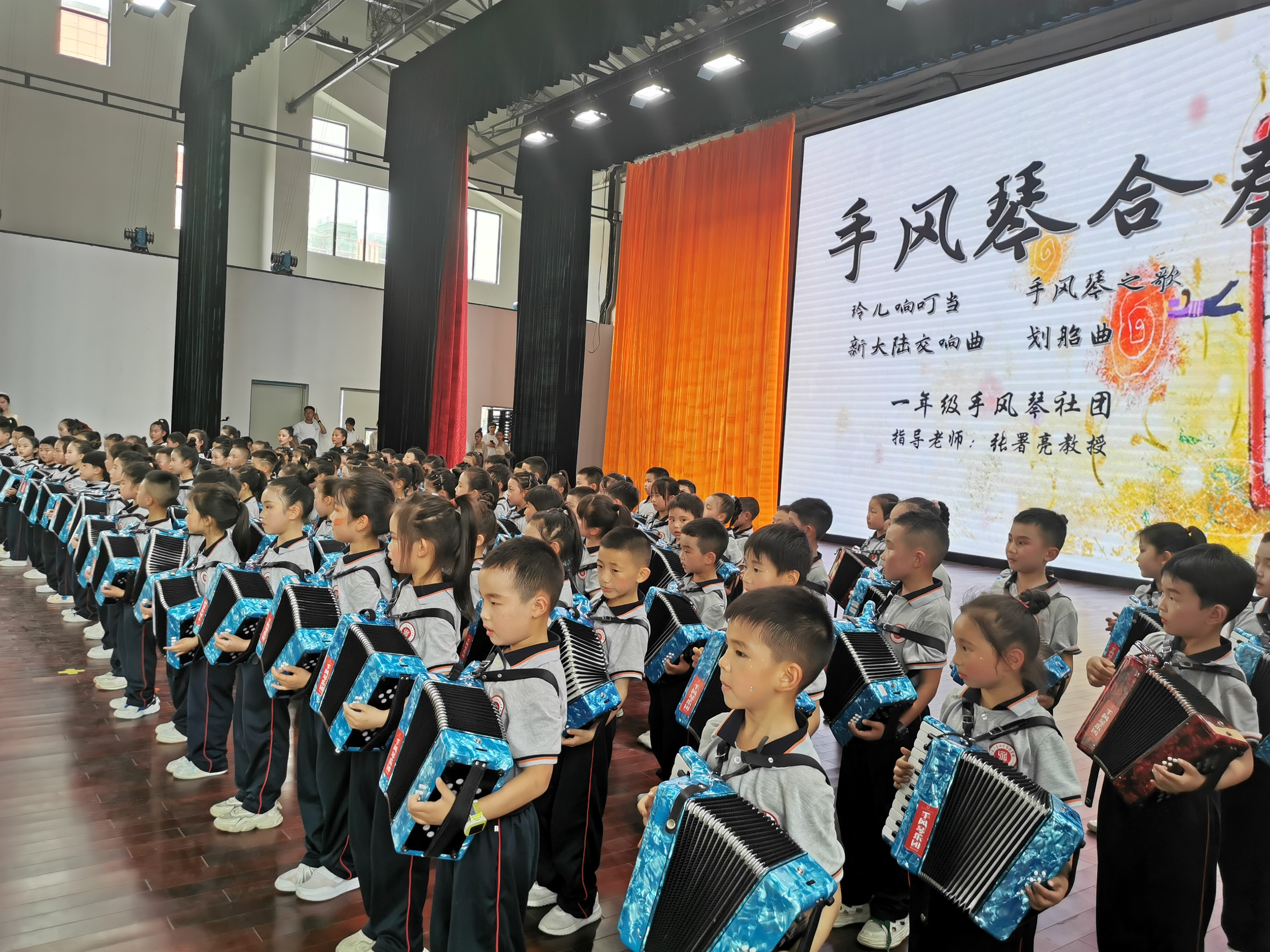 捐贈儀式結(jié)束后,湘佳永興學(xué)校128名手風(fēng)琴樂團(tuán)團(tuán)員現(xiàn)場進(jìn)行了匯報演出。
