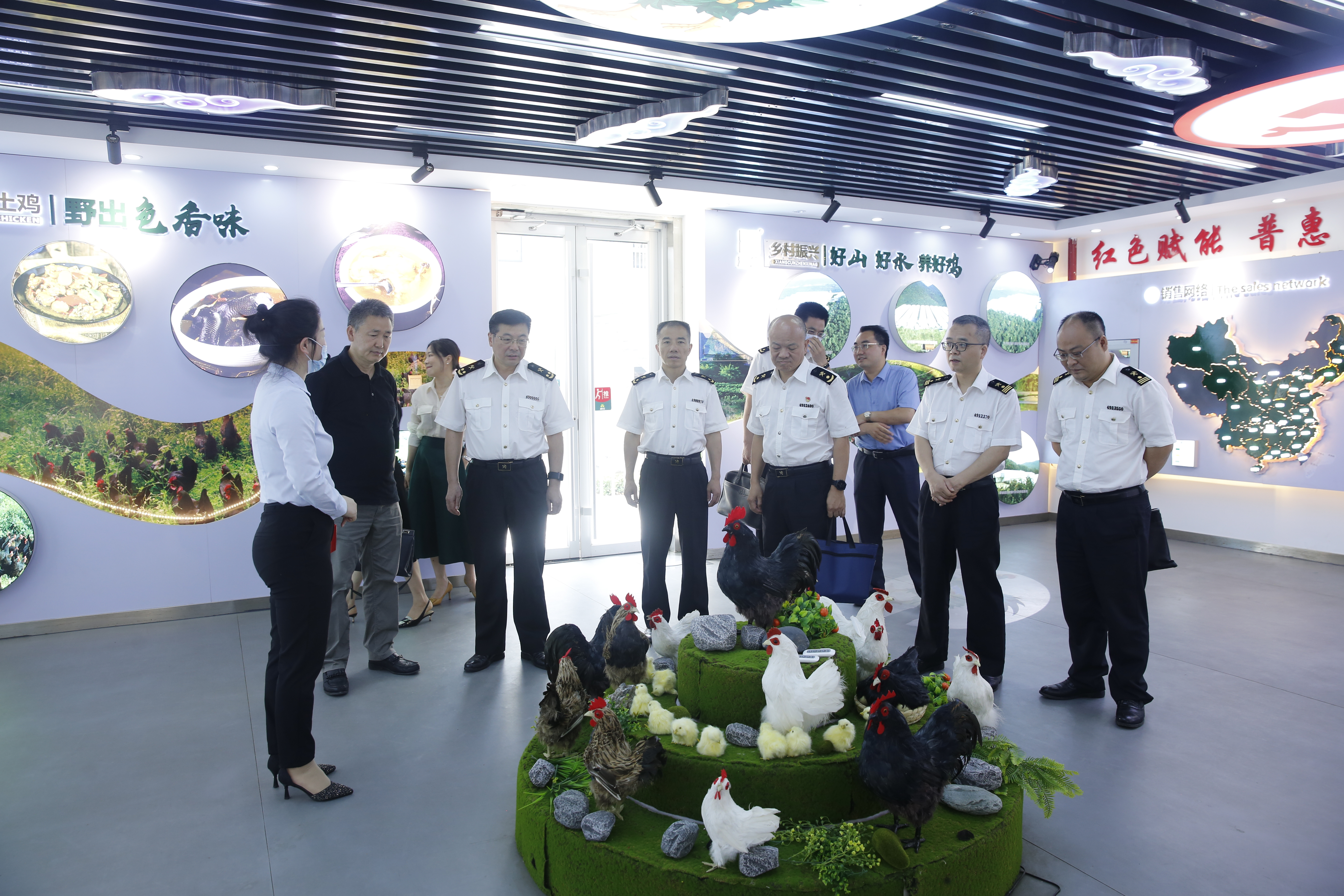 黃志強一行先后參觀了湘佳游客展覽中心、文化長廊、鮮禽屠宰冷鏈加工生產線、質量控制中心、產品陳列室。