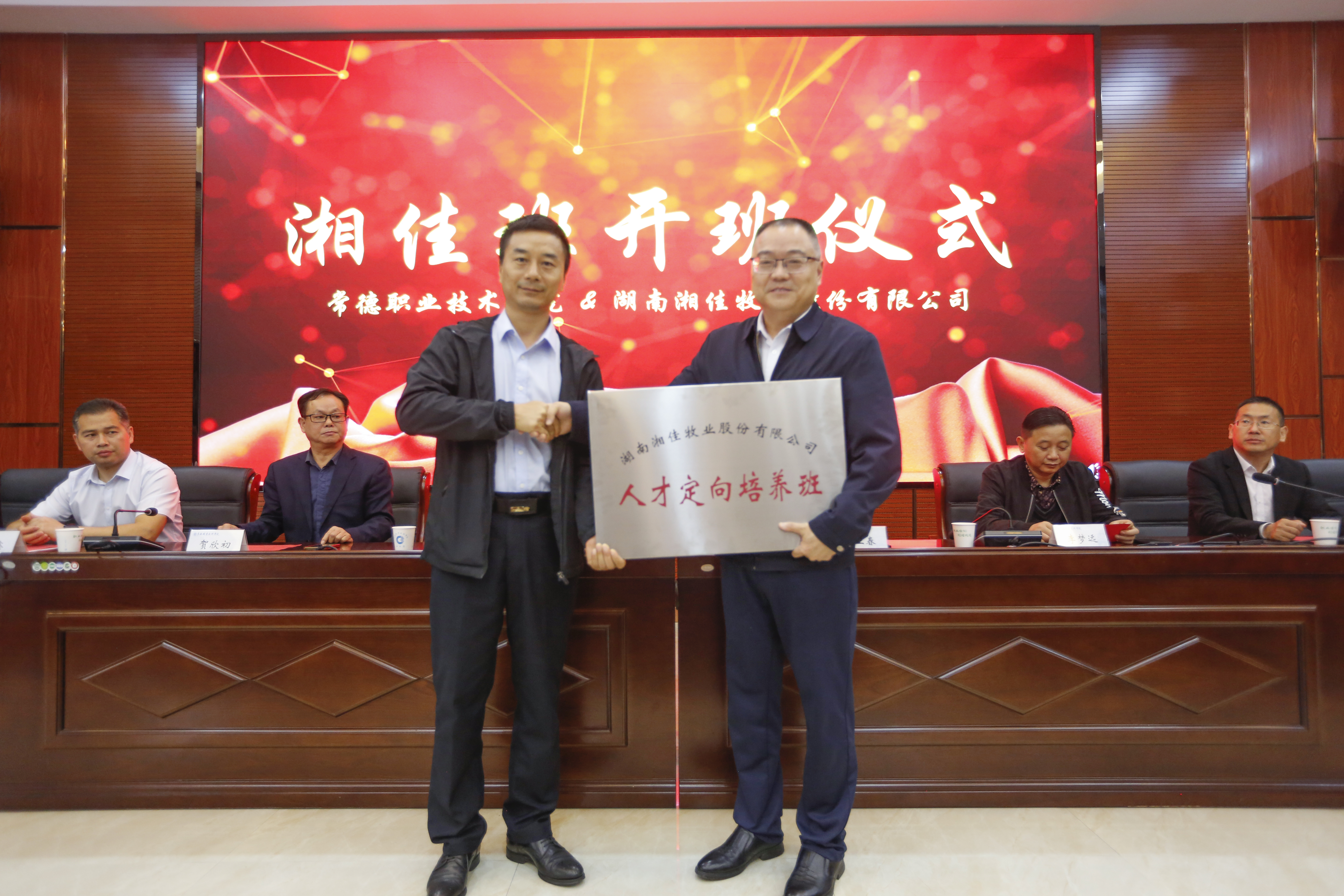 10月10日,湘佳股份與常德職業技術學院聯合開辦的首屆“湘佳班”開班儀式在常德職業技術學院會議廳舉行。常德職業技術學院黨委副書記徐翔、湘佳股份副總裁兼董事會秘書何業春、總裁助理兼文化部部長賀欣初出席開班儀式,學院相關領導、專業教師、湘佳班全體學生以及湘佳股份導師代表參加開班儀式。